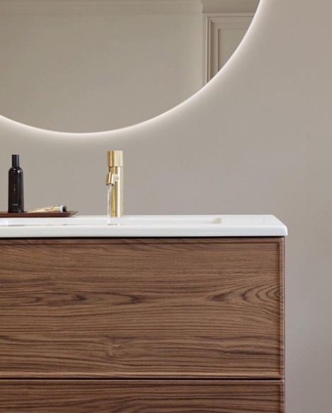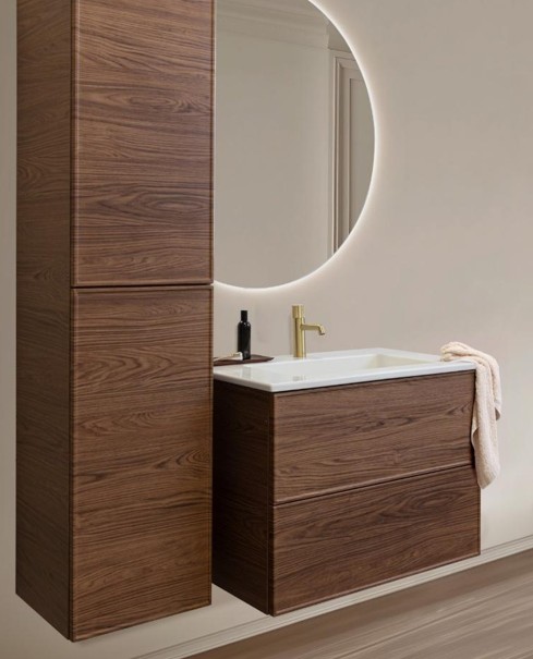 Een van onze favoriete houtlook-collecties is de No Limit-reeks die is aangevuld met de No Limit Frame: een kastdeur met kaderafwerking, verkrijgbaar in verschillende kleuren. De subtiele omlijsting voegt een klassiek detail toe, terwijl de moderne uitstraling behouden blijft. De meubels zijn verkrijgbaar in diverse houtdecors met prachtige nerven die de natuurlijke look benadrukken. Het resultaat? Een badkamer die warmte én persoonlijkheid ademt.