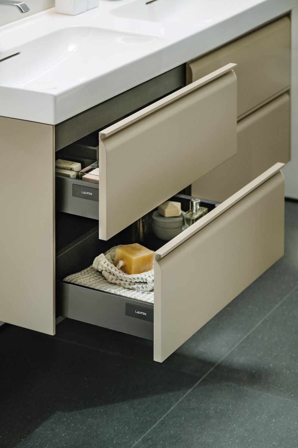 Geïnspireerd door de succesvolle PRO serie, combineert MEDA heldere vormen met gebruiksgemak, maar voegt daarbij nieuwe technologieën en ontwerpopties toe. LAUFEN zet kwaliteit en functionaliteit voorop, iets dat duidelijk tot uiting komt in de MEDA serie. De meubelladen zijn volledig uittrekbaar, voorzien van een soft-close mechanisme, en worden duurzaam geproduceerd in Europa. De collectie biedt een compleet assortiment voor de badkamer, van wastafels tot kranen en van bidets tot baden, waarmee je de ideale badkamer naar eigen smaak kunt samenstellen.