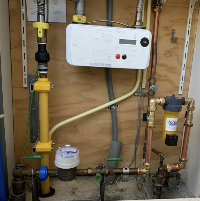 Als u een systeem via een dealer heeft aangeschaft en dit wilt laten installeren, kunt u eenvoudig een vrijblijvende aanvraag indienen. Na ontvangst van uw aanvraag ontvangt u van ons een bevestiging, mogelijk met het verzoek om aanvullende informatie (zoals een foto van de meterkast met waterleiding en watermeter, zoals in het voorbeeld hiernaast). Daarna wordt een offerte opgemaakt en naar u verzonden. Na uw definitieve goedkeuring wordt de opdracht doorgegeven aan onze vaste installatiepartner.