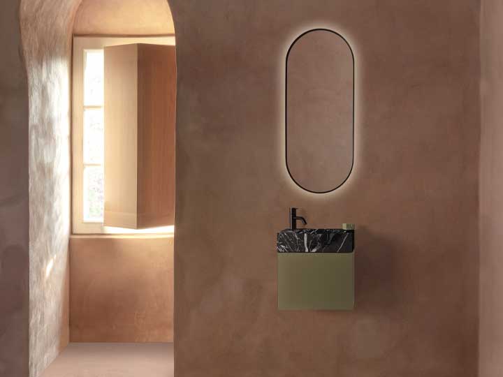Maak je No Limit Round-meubel compleet met een ingebouwde wastafel van kunstmarmer of top solid met afdektablet. Liever een opbouwkom? Ook hier bieden we verschillende vormen en afwerkingen aan, zoals marmer, beton, keramiek, kunstmarmer of top solid, beschikbaar in ronde, vierkante of rechthoekige vormen.