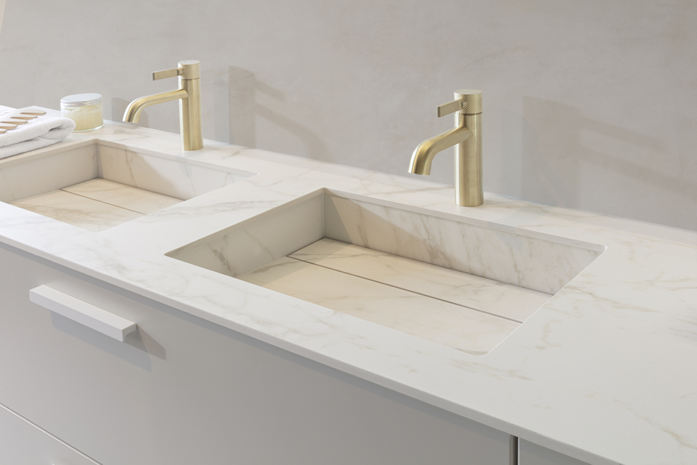 Het oogt clean en tijdloos en er zijn heel wat verschillende mogelijkheden. Klanten kunnen gaan voor een vrijhangende marmeren wastafel of eentje ondersteund door een kast of op een frame. De wastafel kan erin geïntegreerd zijn of ze kunnen kiezen voor een opbouwwaskom uit marmer. Ze kunnen opteren voor tijdloos Calacatta wit of zich aan Bamboo zwart, of het beige travertin wagen.