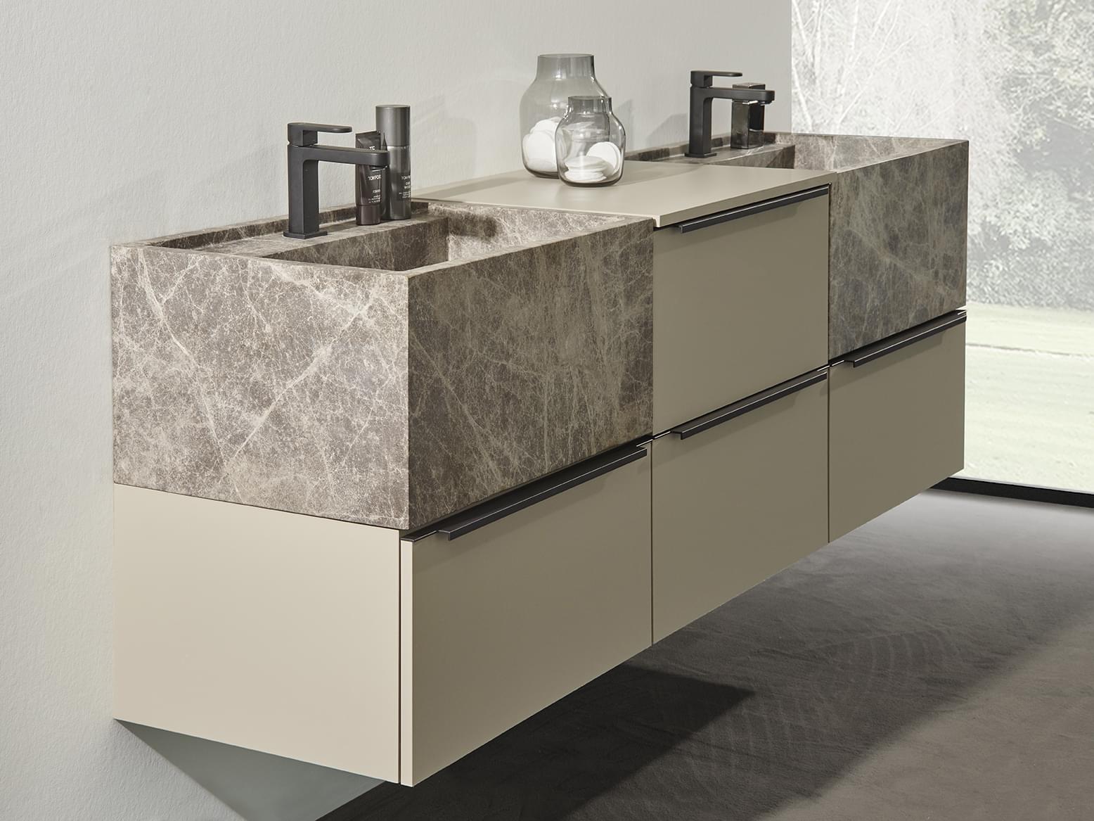 Maar als kroon op een super deluxe badmeubel kan je voortaan ook kiezen uit een collectie marmer bladen en bladen uit beton. Zo wordt de keuze compleet naast de kunstmarmer, solid surface, mineral stone en keramische wastafels.