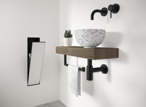 De wastafelmeubels zijn uitgerust met vier licht gebogen pootjes die tevens in hoogte verstelbaar zijn. Met deze nieuwe interpretatie van vormen, creëert Cecilie Manz op vakkundige en geheel eigen wijze een nieuwe uitstraling voor de wasplaats. Het wastafelmeubel wordt aangeboden in drie breedtes – 1788 mm voor twee wastafels, 1388 mm voor enkele wastafels en 688 mm voor het gasten-wc. De zijdematte finish in de tinten wit, Nordic wit, taupe, steengrijs, lichtblauw en nachtblauw geven de ruimte een heel eigen karakter. Het kwarts blad van het meubel in drie perfect op elkaar afgestemde kleurvariaties evenals de uitvoering van massief Amerikaans notenhout, kunnen naar keuze worden gecombineerd. Greeploze uitschuifbare laden zijn door de ingebouwde tip-on-techniek en het zelfsluitende systeem heel eenvoudig in het gebruik.