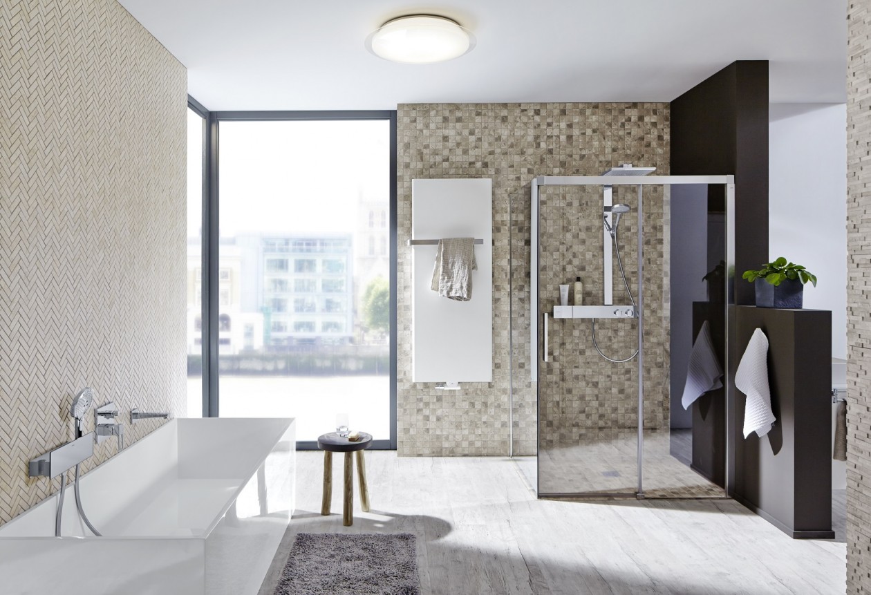 Bijvoorbeeld bij de gangbare glas- en profielhoogtes, de hoogwaardig ge-eloxeerde aluminium profielen en grepen uit hoogwaardig metaal, de transparante handdoekhaak en veel meer.