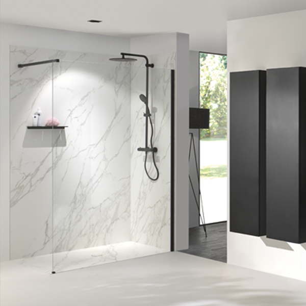 Combineer zwart kraanwerk met een zwart framed doucheglas of zwarte doucheprofielen. Nog niet genoeg zwart? Kies dan ook voor een zwarte douchebak.