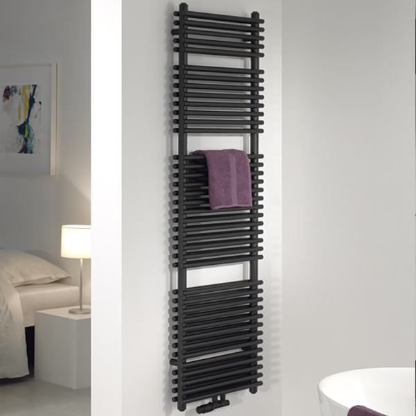 Ook een zwart toilet of zwarte radiator kunnen zorgen voor een mooi contrast.