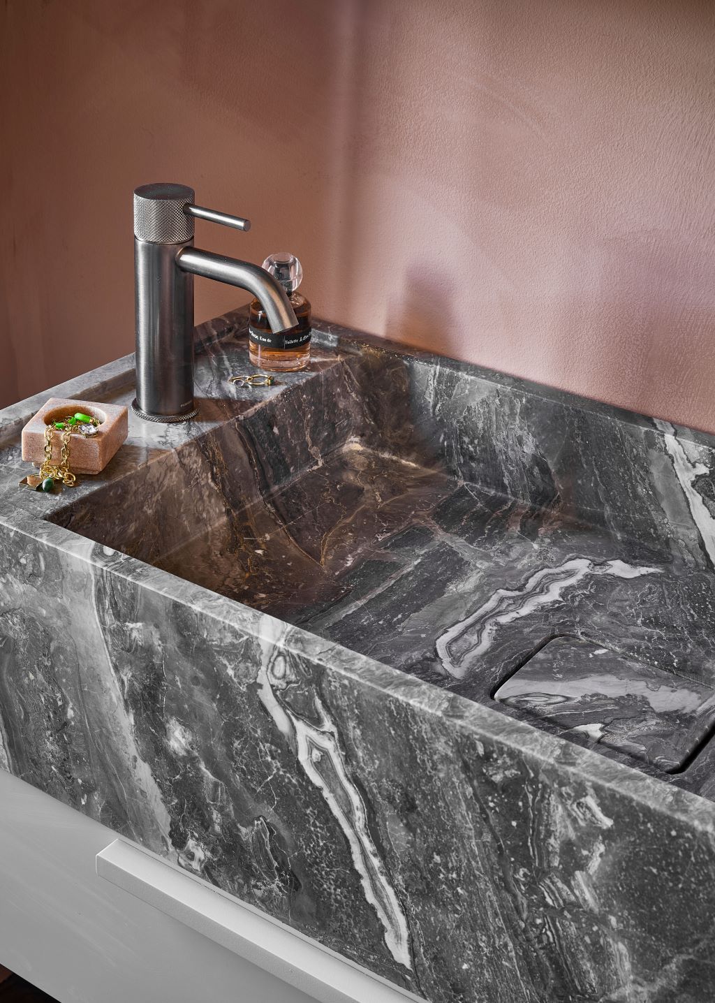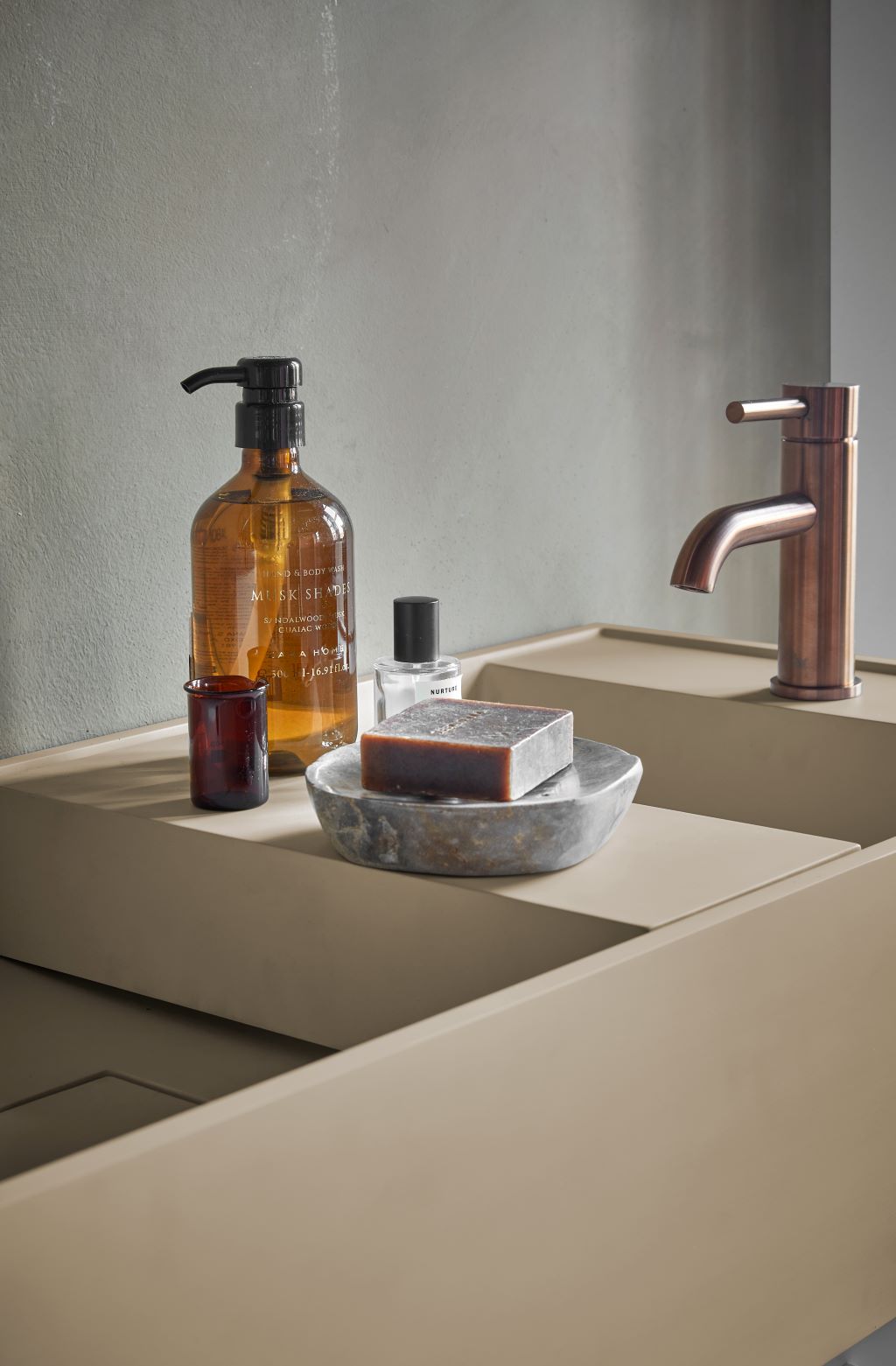 Deze reeks brengt organische vormen helemaal terug naar de badkamer met als summum een die je in het centrum van je badkamer kan plaatsen.