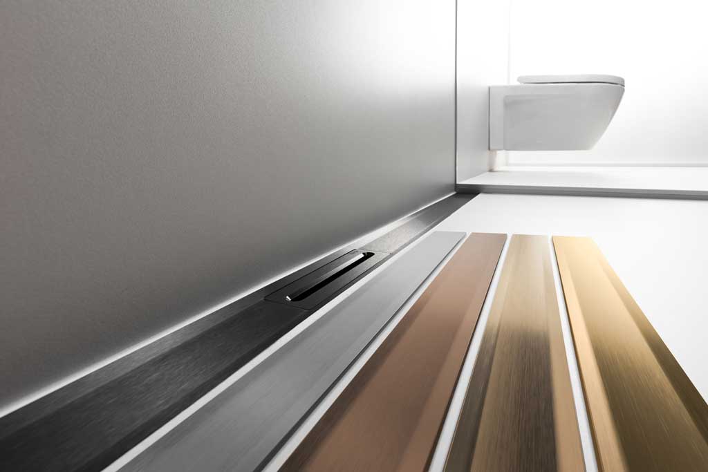 De innovatieve combinatie van lijnafwatering en puntafvoer voor inloopdouches is nu ook verkrijgbaar in de kleuren zwart, goud, koper/goud en champagne. Dit betekent dat de meest recente trendkleuren nu ook tot in de kleinste details in badkamers kunnen worden verwerkt. Zelfs een combinatie van verschillende gekleurde profielen en inzetstukken is mogelijk bij de douchegoten.