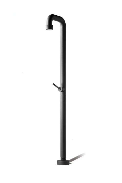 Vrijstaande douches en vrijstaande badvuller uitgevoerd in roest vrij staal. Verkrijgbaar in geborsteld of gepolijste afwerking.