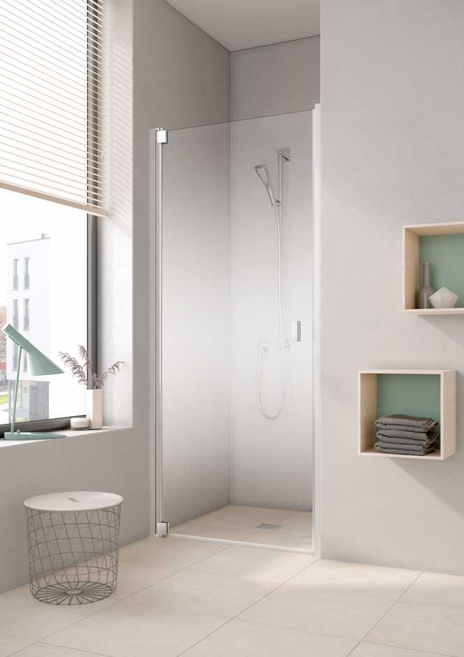De slanke douche-opstelling is bijzonder functioneel. De Raya past zich dankzij de draaideur-techniek met liftsysteem en intelligent onzichtbare verstel- en maatsysteem perfect aan uw douche aan.