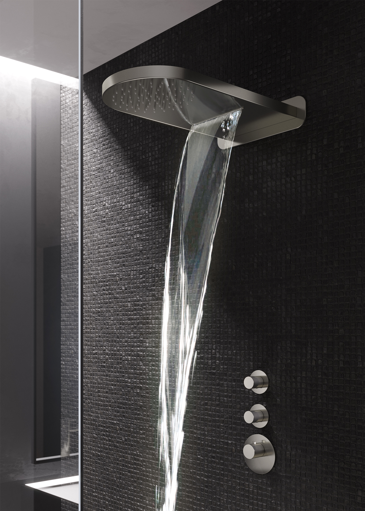 De serie Mate zorgt voor een wellnessbeleving in de badkamer. De douches hebben een strakke vormgeving, een chique uitstraling en kunnen worden uitgebreid met allerlei luxe functies. Denk aan douches met een cascade uitloop (waterval), een warme nevelfunctie en masserende bodyjets. Een aantal hoofddouches zijn uitgerust met ledverlichting. Je kunt kiezen uit maar liefst negen kleuren. Zo krijg je van rode ledverlichting een energieboost en zorgt een groene kleur juist voor ontspanning.