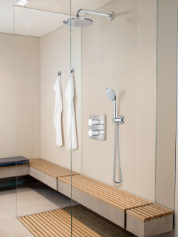 Twee Perfect Shower Sets inbouw waarbij de techniek volledig verwerkt wordt achter de muur. En een nieuw Euphoria douchesysteem dat stijlvol is, maar ook vooral functioneel.