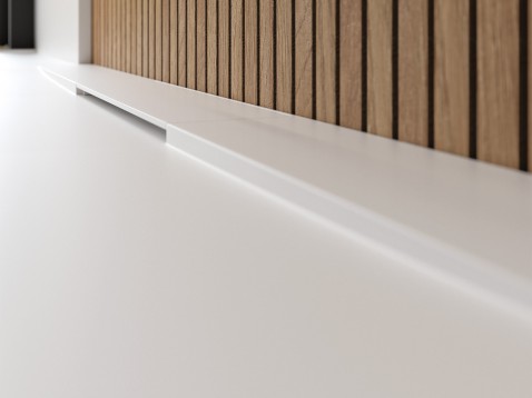 Wat opvalt aan de serie ENJOY zijn de ranke profielen en mooie afgeronde scharnieren, die bijna zacht aanvoelen en deze serie een karakteristiek uiterlijk geven. De vlakaansluitende scharnieren en de raamloze glassegmenten zorgen overigens dat het reinigen zeer eenvoudig gaat.