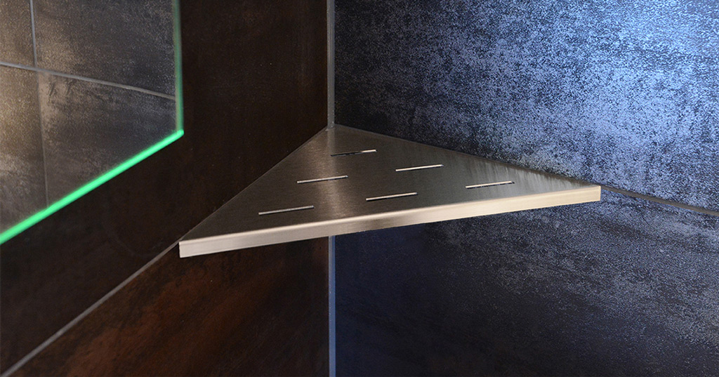 De nieuwe LoooX Corner Shelf wordt toegepast in de hoek van de badkamer. Vele genieters van lekker douchen, missen net dat beetje extra afzetruimte.