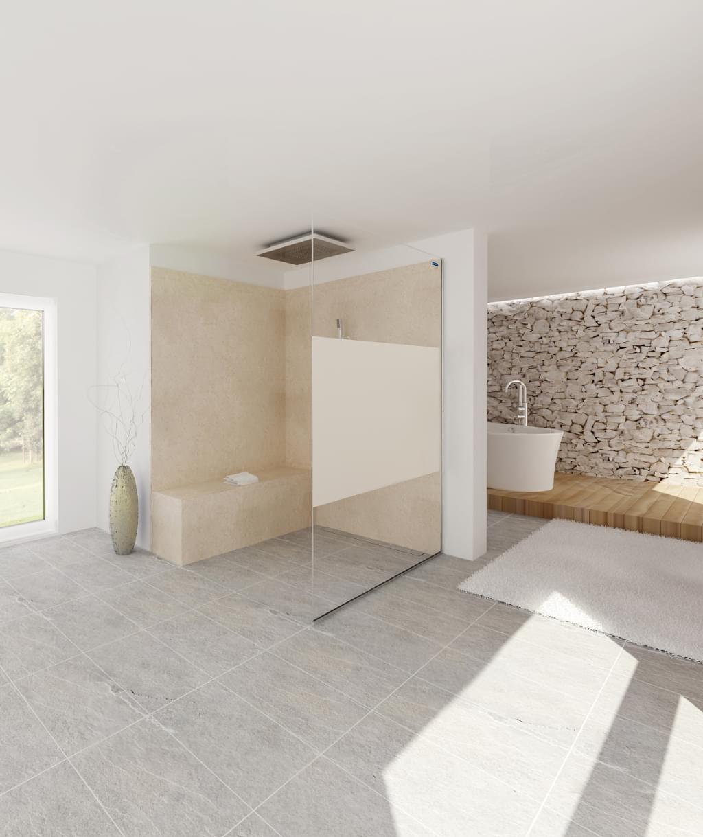Het douchescherm en het bad zijn nauwkeurig op elkaar afgestemd in vorm en functie. Als eenheid bieden ze een ruim bemeten douchegelegenheid met maximale bewegingsvrijheid en een comfortabel inloopbad met onbelemmerde toegang.