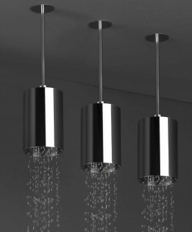 Via een soepel draaisysteem verdwijnt de doucheslang in de wand: geen ontsierende slang meer in de designbadkamer.