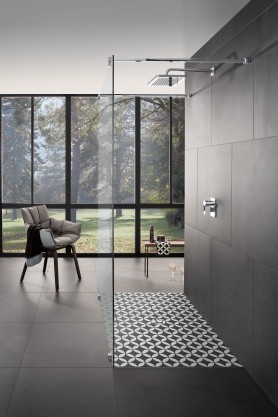 Fascinerend lijnenspel, een magische blikvanger: deze decors, waarvan er 4 werden ontworpen door Edward van Vliet, toveren door de geometrische patronen en grafische structuren een bijna ruimtelijke diepte op de vloer. Het ziet er telkens weer anders uit, iets waar u tijdens het douchen helemaal in kunt opgaan. Eigentijds of klassiek; deze elegante patronen passen bij elke badkamerstijl.