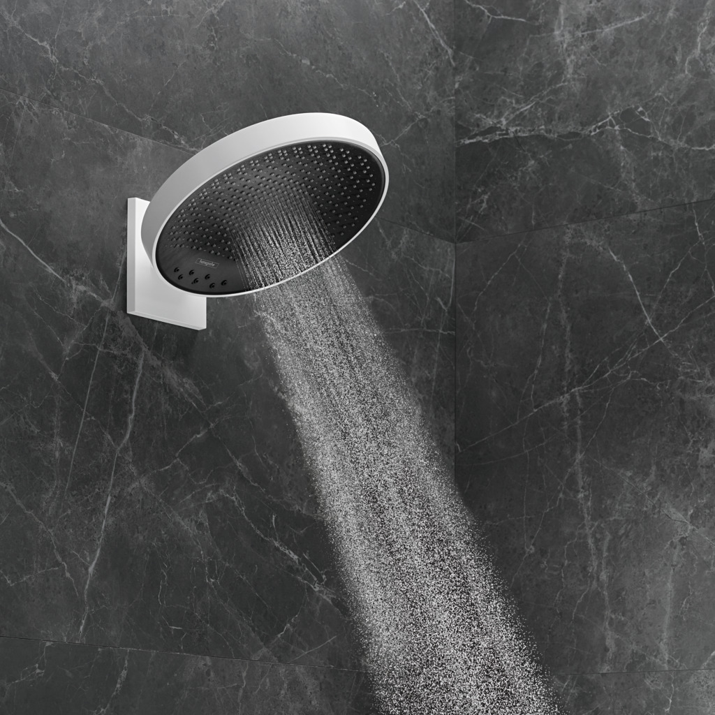 Het Rainfinity-design is optisch hoogstaand. De grote hoofd- en handdouches brengen met de moderne, gekleurde oppervlakken en de straalplaat met subtiele structuur meer huiselijkheid in de badkamer. De matwitte kleur van de douches staat mooi in contrast met de grafietkleurige straalplaten. Ook de nieuwe showerpipe is een ware blikvanger in de doucheruimte. Deze zorgt met de hoofddouche, de handdouche, de planchets en de aparte inbouwbediening voor moderne accenten. Met Select kun je makkelijk en intuïtief tussen de straalsoorten wisselen.