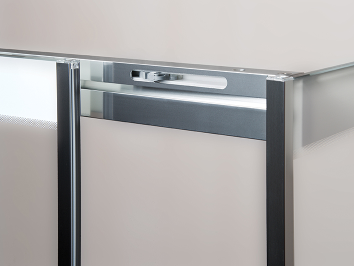 De handgreep is minimalistisch vormgegeven en niet op het glas maar juist op het profiel geplaatst. Dat geeft een fraai stilistisch douchebeeld én zorgt voor extra instapruimte én schoonmaakgemak. Elegantie door grote transparantie. Het glasoppervlak is immers helemaal vrij van onderbrekingen. Daar komt nog bij dat de diverse glasdelen elkaar niet overlappen, maar juist op elkaar aansluiten; mooi én praktisch!