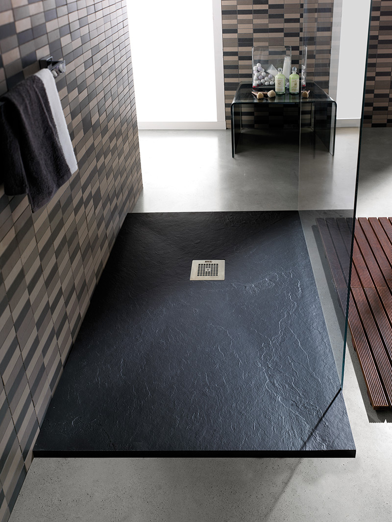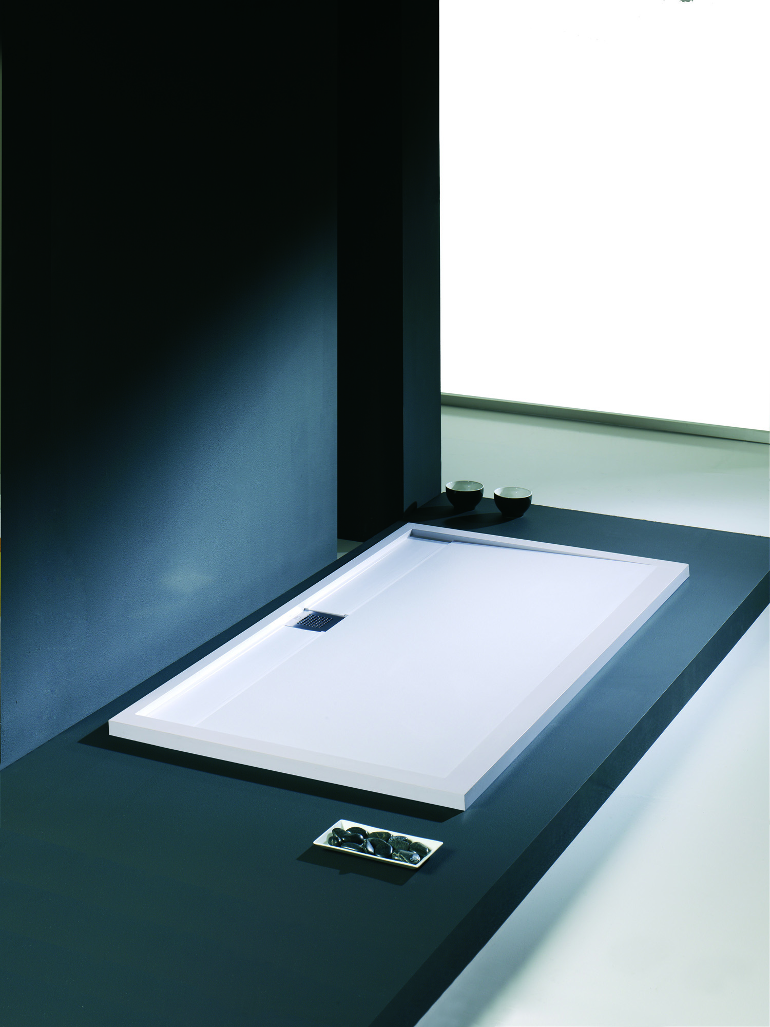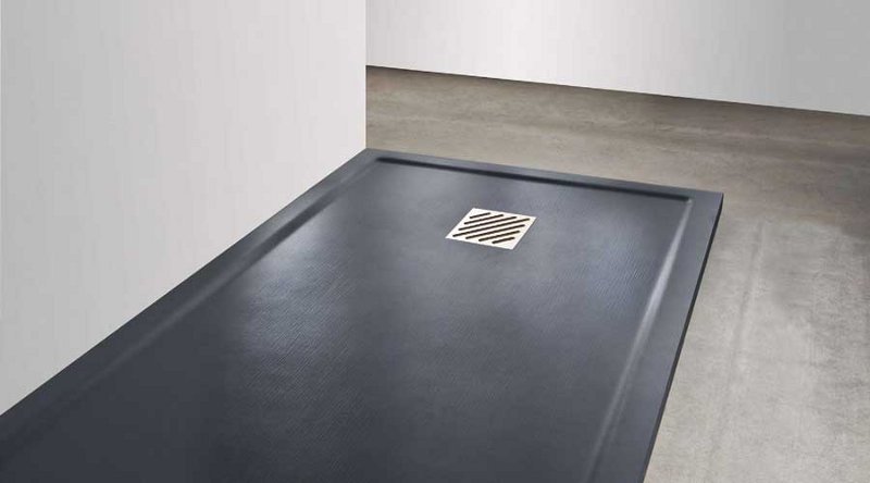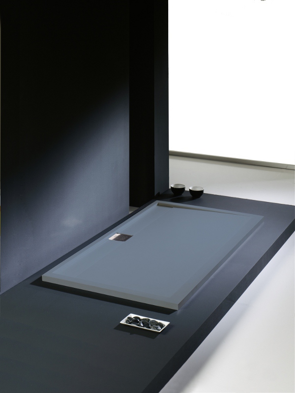 Douchebak Stone met opstaande rand is van composiet en wordt geheel op maat geleverd.