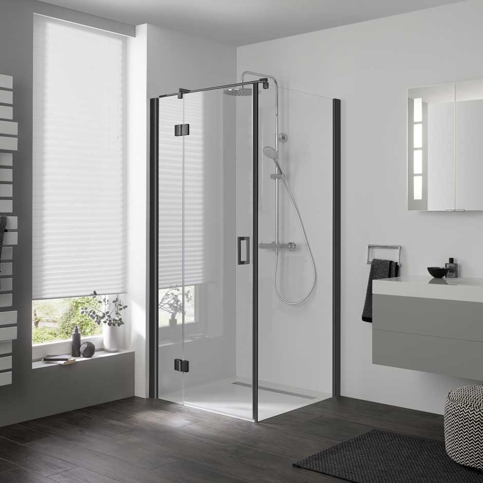 Elegant, chique en tijdloos modern – dat zijn vandaag de dag de eisen aan de badkamer. De serie Aperto-douchecabines van HSK Duschkabinenbau maakt dit mogelijk met nieuwe chique zwarte accenten. Zo zijn de profielen, scharnieren, grepen en stabilisatiebeugels nu in trendy zwart mat te krijgen – dat maakt van de douchecabine een bijzondere blikvanger in de badkamer.