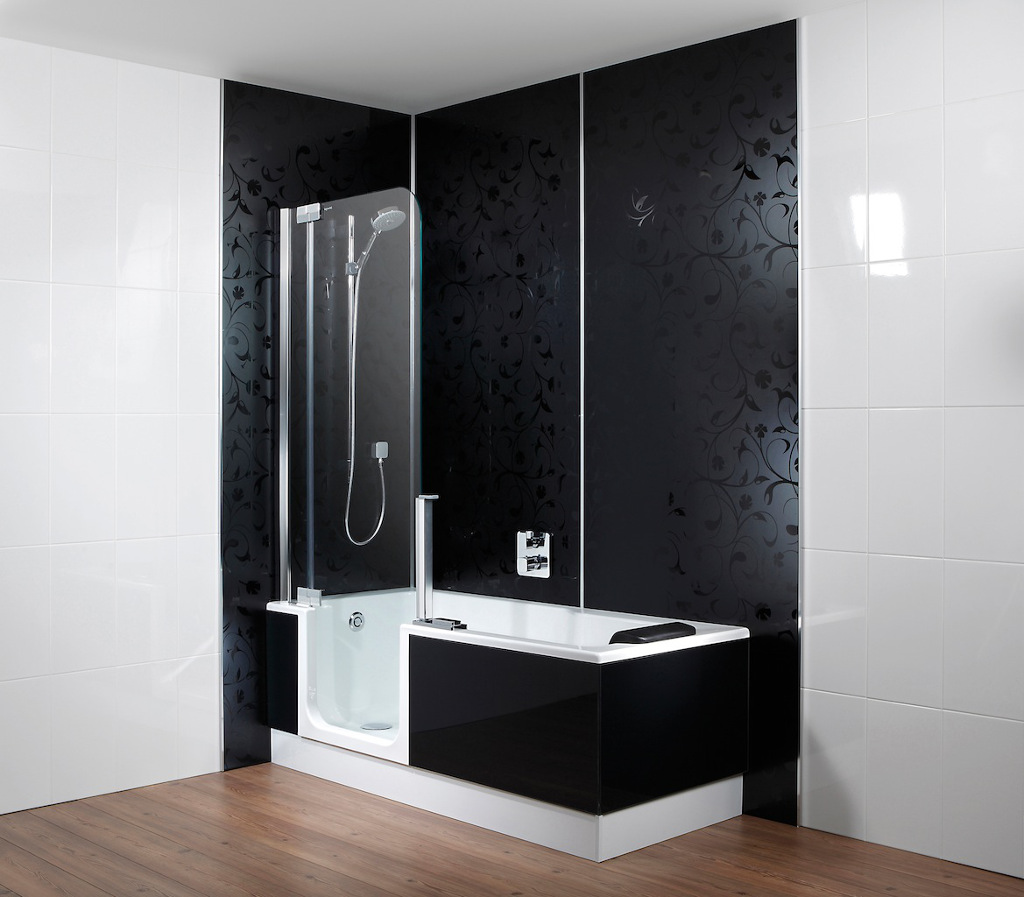 De laatste tijd betreedt deze klassieker ook de badkamer, met kleurige profielen van douches, geheel in zwart en wit natuurlijk.