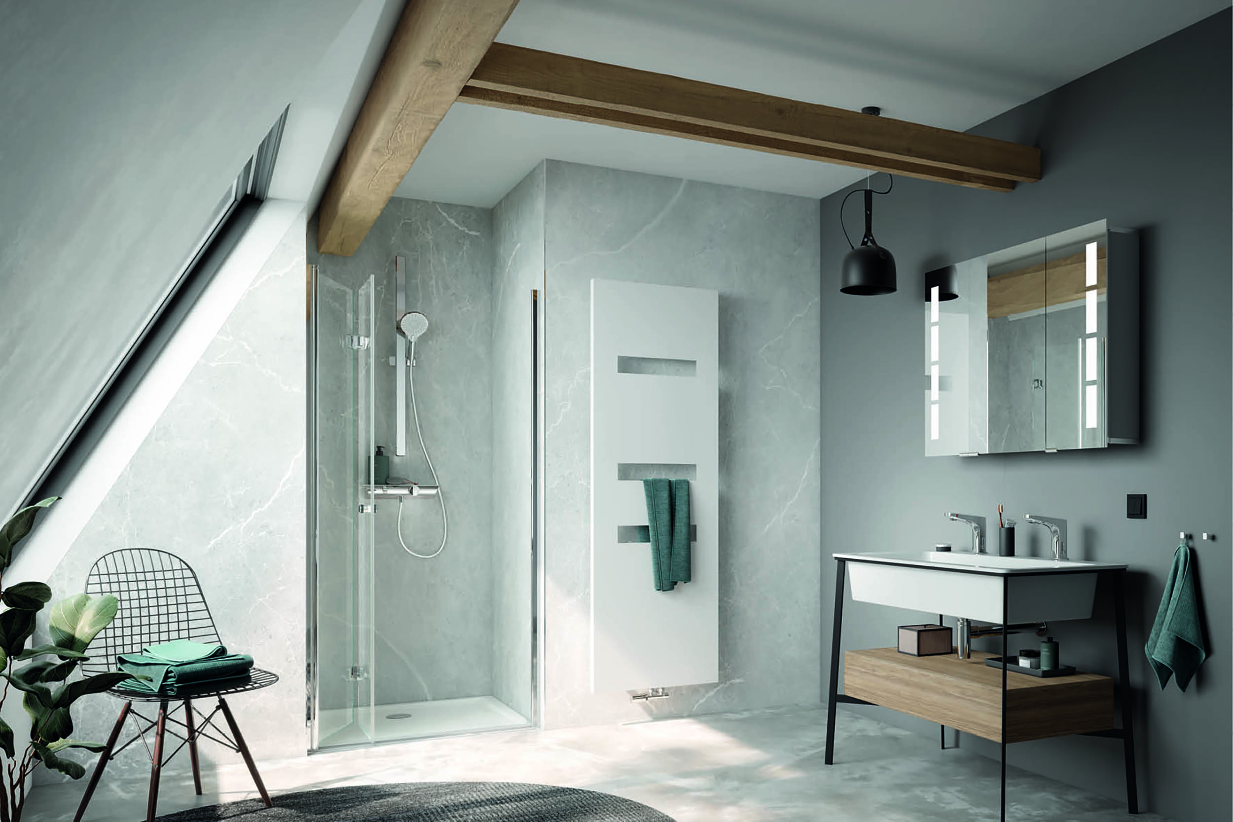Badkamers in Duitsland en Nederland zijn zeer gevarieerd maar vaak nogal klein en hoekig. Om ervoor te zorgen dat er toch kan worden genoten van een luxueuze douche-ervaring, zijn ruimtelijk flexibele en hoogwaardige douche-oplossingen essentieel. Het succesvolle douchewandenprogramma Exklusiv 2.0 van HSK biedt precies dat: verschillende nieuwe draaivouwdeur oplossingen combineren moderne esthetiek met slimme technische functies voor een echt exclusieve douche-beleving.