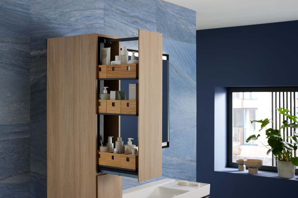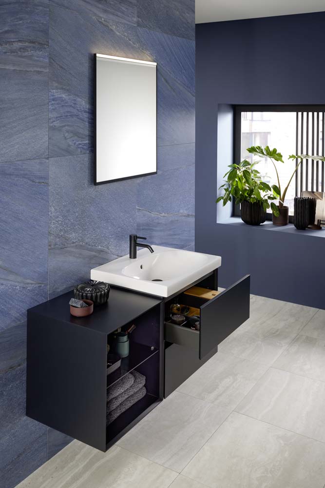 De montagetechniek, afmetingen en oppervlakken van de badkamerseries zijn aangepast en uniform gemaakt. Hierdoor sluiten de wastafels en meubels van deze drie badkamerseries moeiteloos op elkaar aan. Losse meubelelementen, zoals hoge kasten en zij- of hangkasten zijn verkrijgbaar in bijpassende oppervlakken en kunnen universeel worden gebruikt. Spiegels en spiegelkasten van de Geberit Option en ONE series completeren het assortiment voor een harmonieuze complete badkamerinrichting.