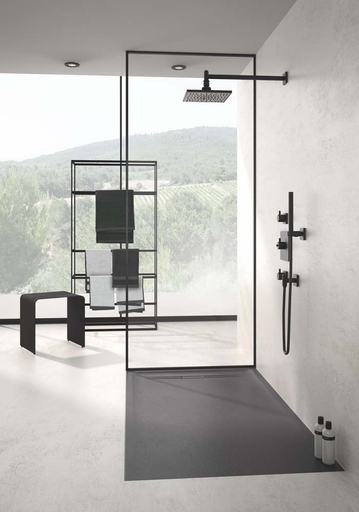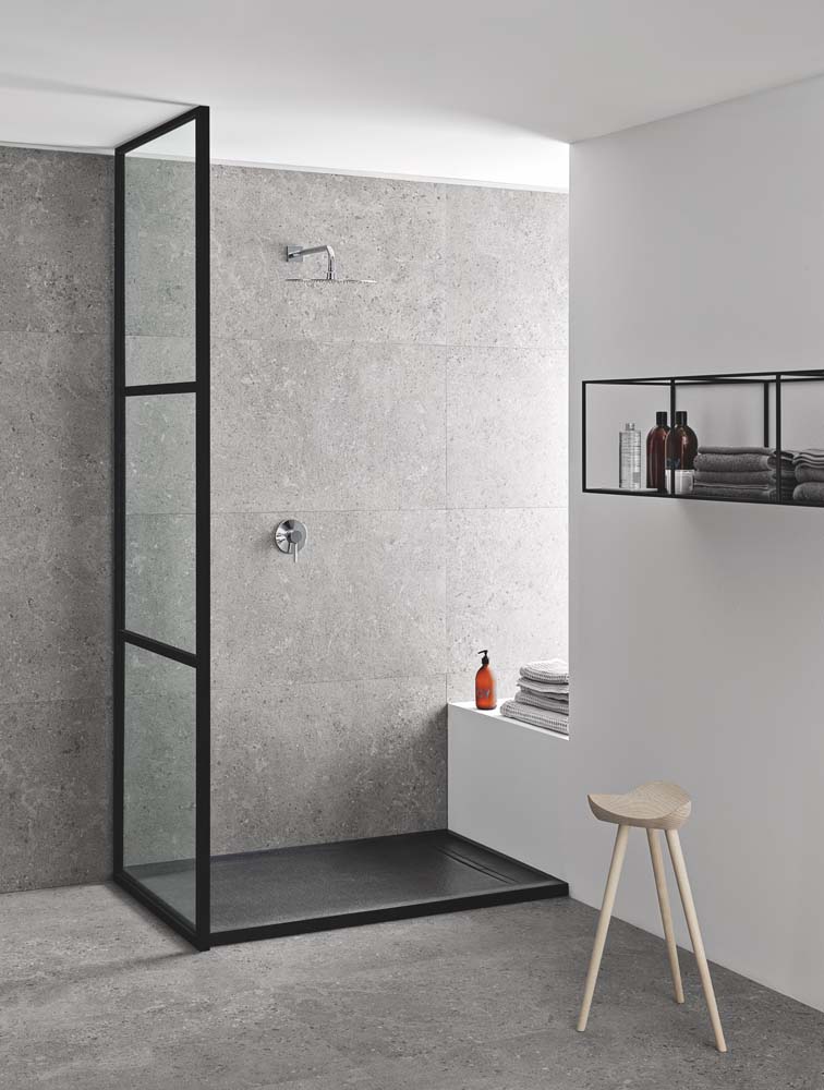 De leisteenstructuur van de Geberit Sestra douchevloer past perfect bij matte vloer- of wandtegels voor een natuurlijke badkamersfeer. Door het matte oppervlak van Sestra te combineren met een glanzende wand- en vloerafwerking ontstaat er juist meer contrast en speelsheid in de badkamer. Door de ruime keuzemogelijkheid, zowel in kleur als afmeting, is Sestra toe te passen in verschillende badkamerstijlen en in verschillende badkamergroottes en -vormen.
