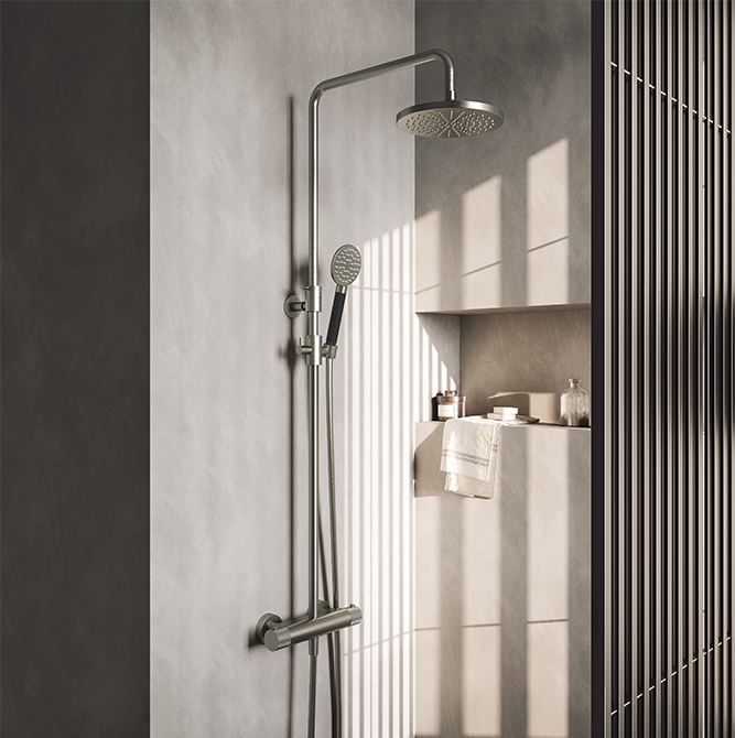 Cobber X is zowel geschikt voor de badkamer als de keuken. De unieke gravure is doorgevoerd in de hele serie, zodat gemakkelijk één geheel gecreëerd kan worden. Kies bijvoorbeeld voor een prachtige vrijstaande wastafelmengkraan of voor een compleet ingebouwde thermostaat met verschillende bedieningsknoppen. Cobber X in de keuken? Ook dat is mogelijk!