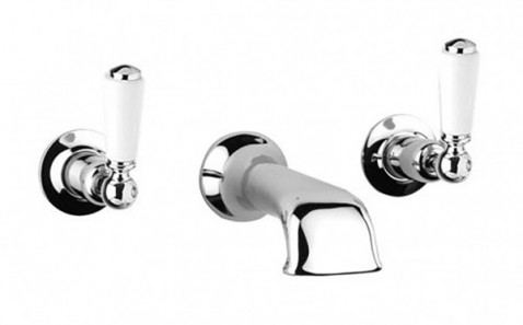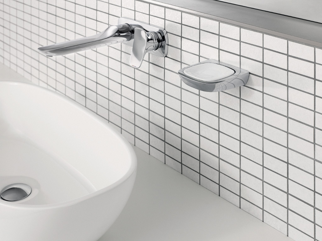 Oplossingen bij de wastafel: Kludi tweegats wandmengkraan.