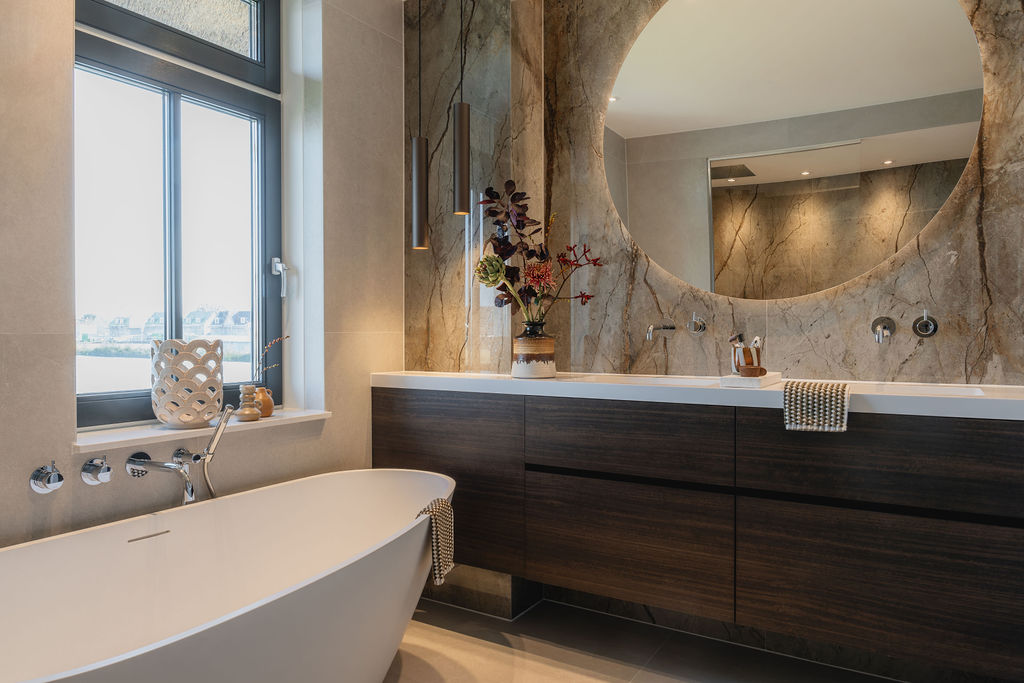 Wij zijn de trotse bewoners van een prachtige watervilla, die we zelf hebben laten bouwen 23 jaar geleden. Het is een uniek huis met veel ruimte en luxe, zoals drie badkamers die allemaal anders zijn ingericht. Ons doel was om een huis te creëren dat de sfeer van een hotel heeft, maar dan wel een heel chique hotel. En dat is volgens ons zeker gelukt! We genieten elke dag van de grote douche, het comfortabele toilet van Geberit, de stijlvolle wasbakken en nog veel meer. Het is echt een droomhuis!