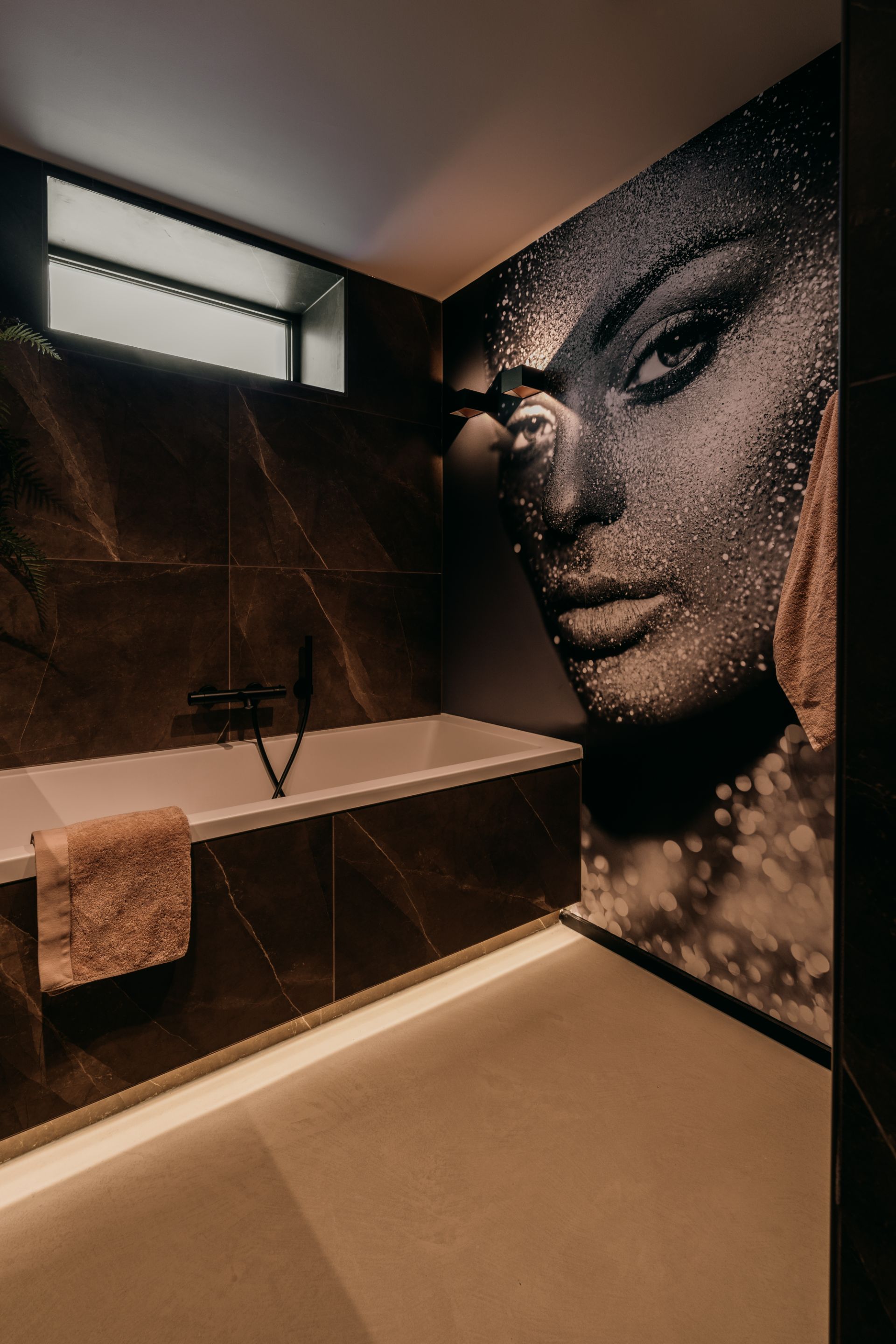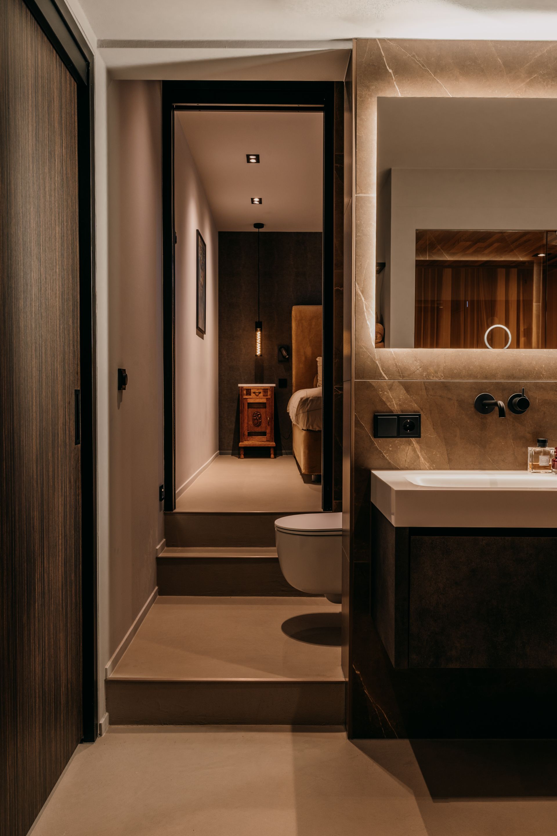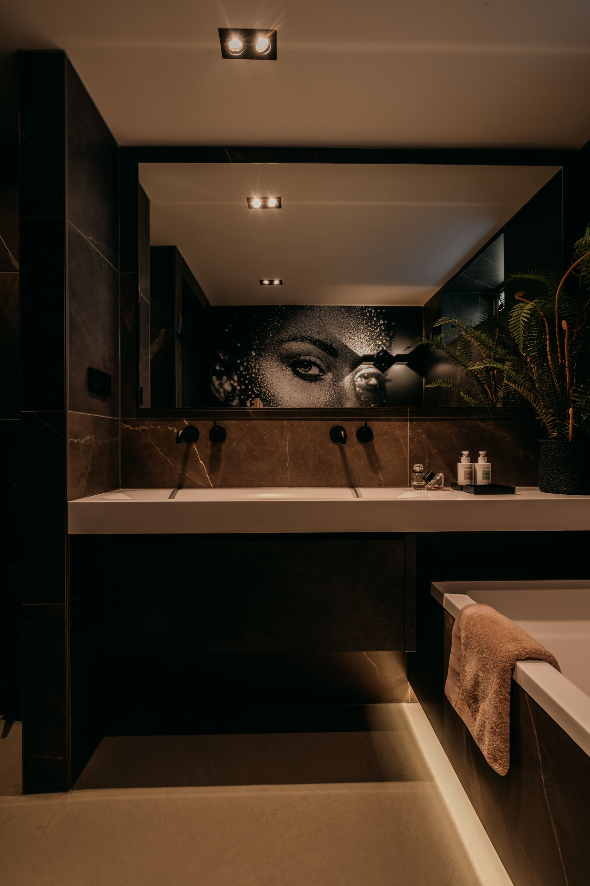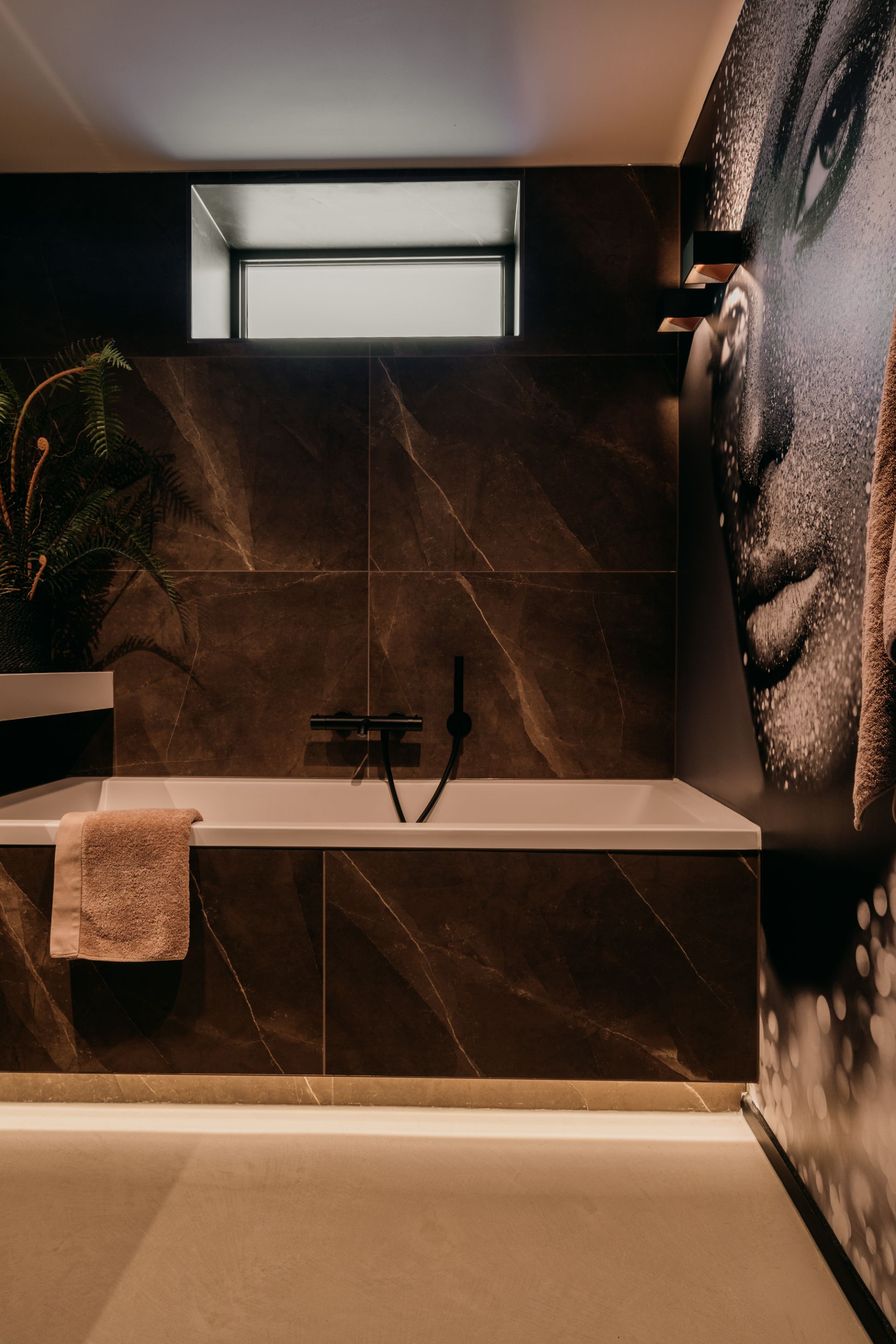 Deze luxe badkamer is een oase van rust en comfort, met tegels op de muur die een harmonieuze sfeer creëren. De vloer en het licht zijn licht van kleur, waardoor de ruimte groter en frisser lijkt. Hier kun je je helemaal relax voelen in een hotel chique stijl. De badkamer is een plek waar je je kunt verwennen met luxe en comfort. Een luxe badkamer slaapkamer en sauna en toilet in een is een van de meest gewilde woonwensen. Dit is een perfecte manier om comfort, privacy en ontspanning te ervaren in je eigen huis. Dit is een perfecte plek om te ontspannen en te genieten.