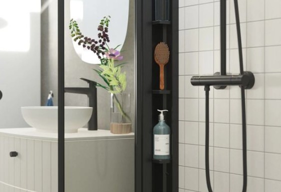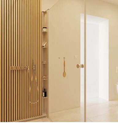 Stijlvolle en functionele opbergruimte die perfect past bij jouw doucheopstelling
