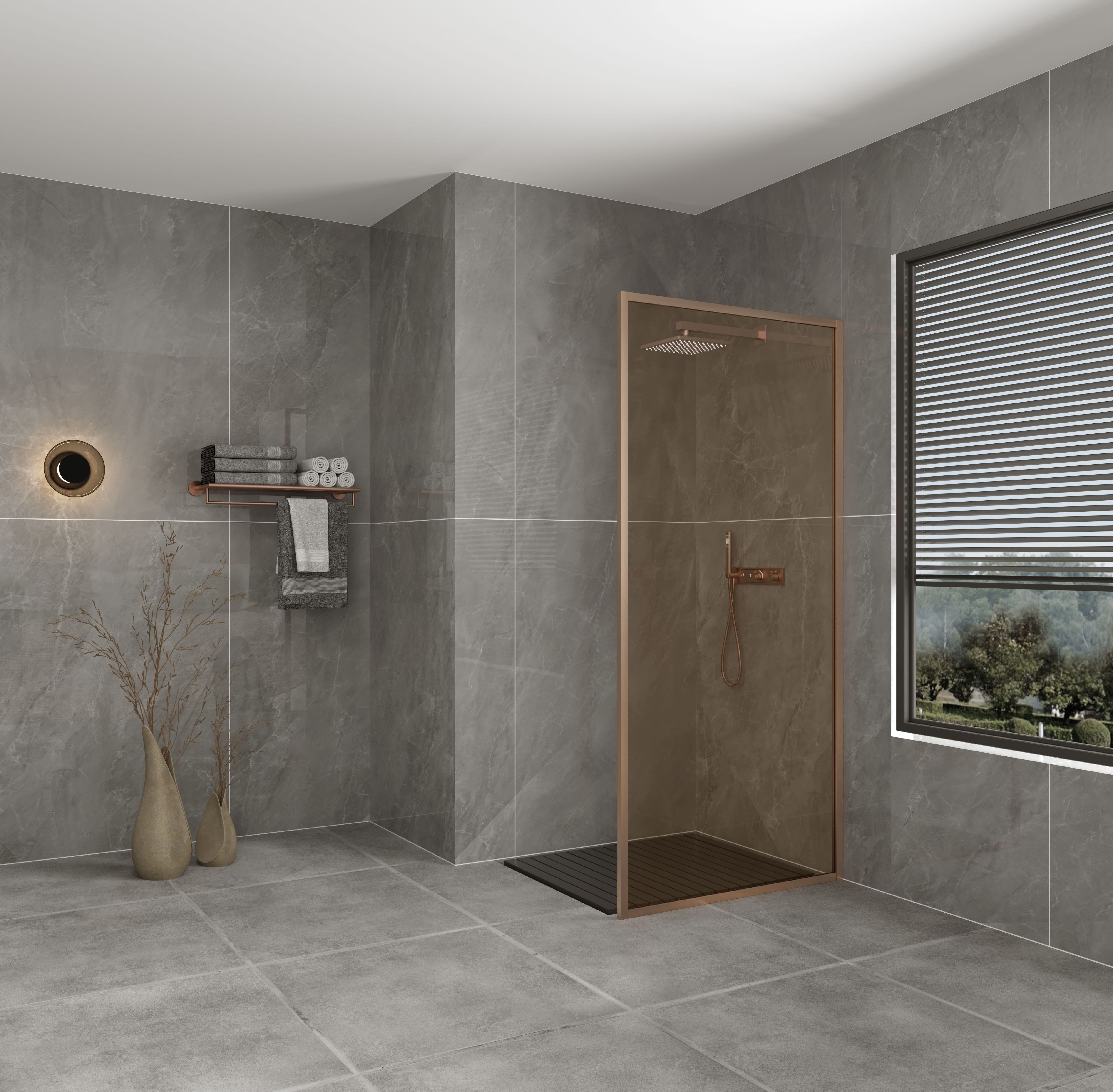 Monza frame inloopdouches: elegante omkaderde glaswanden in de afmetingen 90, 100 en 120cm. Leverbaar in 4 glasopties: helder, grijs, bruin en fluted 8mm veiligheidsglas met standaard Nano-flow antikalkbehandeling, evenals 6 profielkleuren.