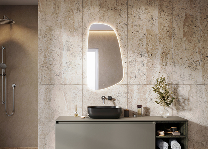 Steeds meer vinden ronde en organische vormen een weg in ons interieur. Organische spiegels, afgeronde hoeken en asymmetrische badkameropstellingen.