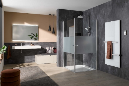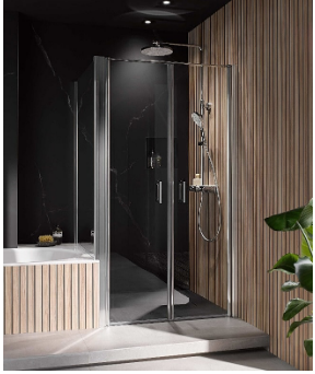 Het is niet ongebruikelijk dat de douche en het bad naast elkaar staan. Hier kunnen badkamer-professionals hun klanten een op maat gemaakte douche-oplossing aanbieden met de Exklusiv 2.0 draaideur met verkorte zijwand op het bad.