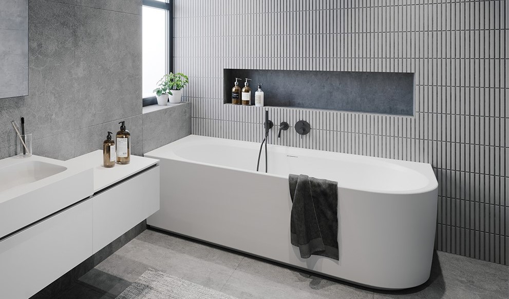 Acrylbaden zijn verkrijgbaar in diverse vormen en afmetingen, en sommige RIHO acrylbaden zijn zelfs beschikbaar met een mat zwarte buitenkant.