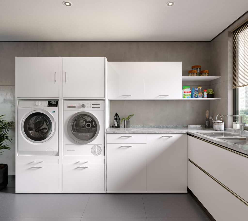Of je nu een grote of kleine wasruimte hebt, hoog of laag: met ons modulaire kastsysteem is alles mogelijk. Stel jouw eigen wasruimte samen met behulp van onze configurator.