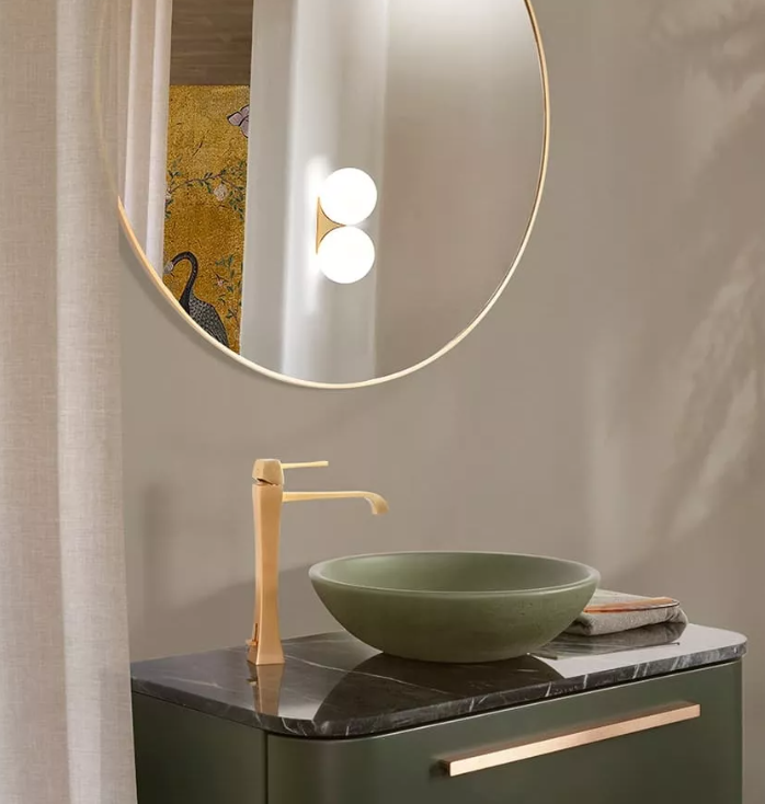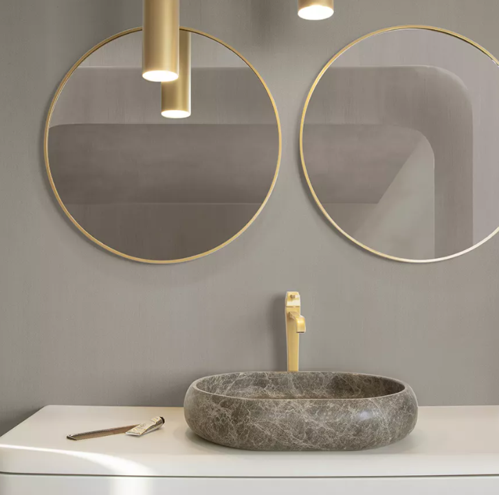 Voor een harmonieus geheel kun je binnen deze collectie ook kiezen voor ovale spiegels, die je aan de muur of zelfs aan het plafond kunt monteren. Heb je extra opbergruimte nodig voor kleine spullen? Geen zorgen! De bijpassende ronde en ovale spiegelkasten bieden de perfecte oplossing.