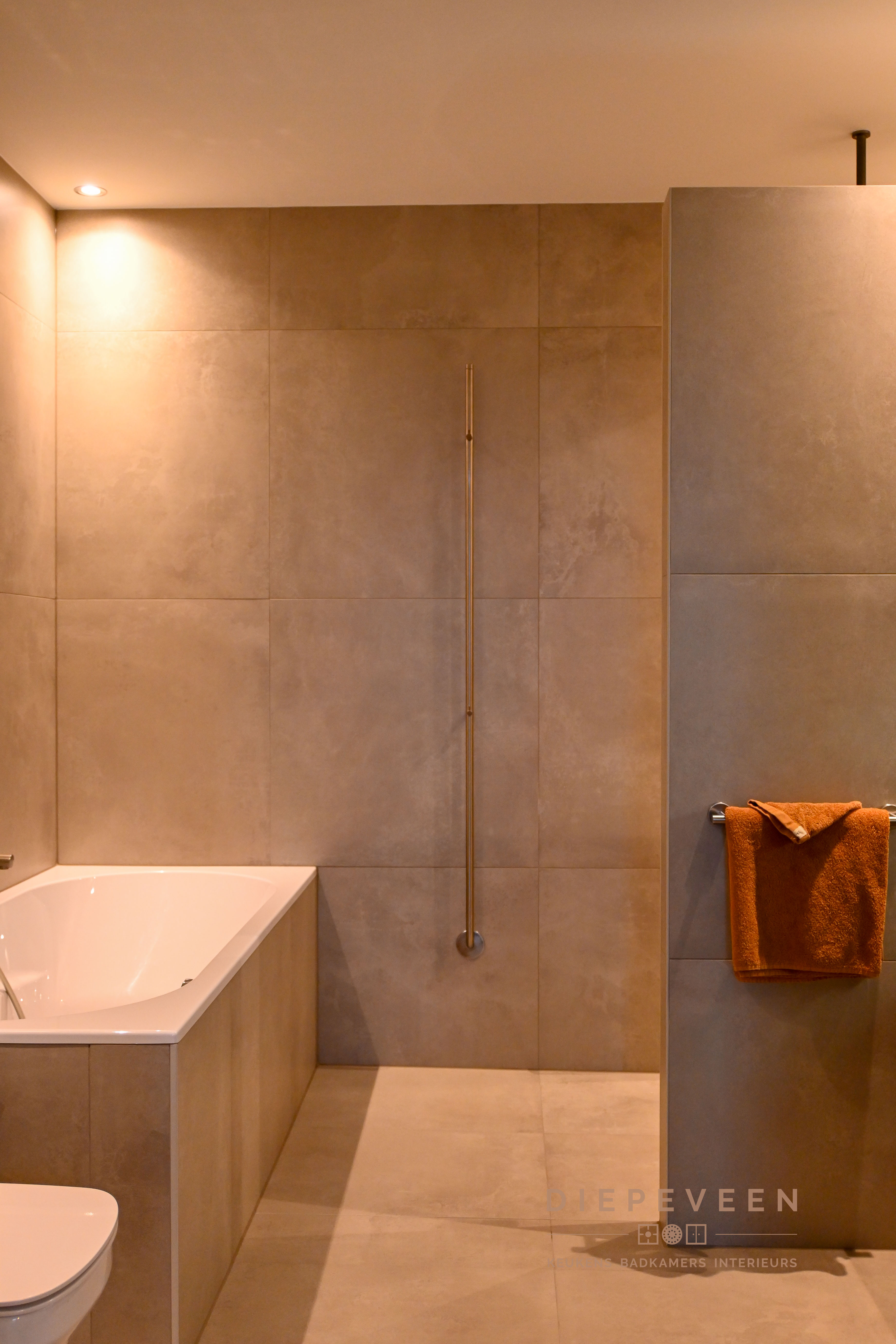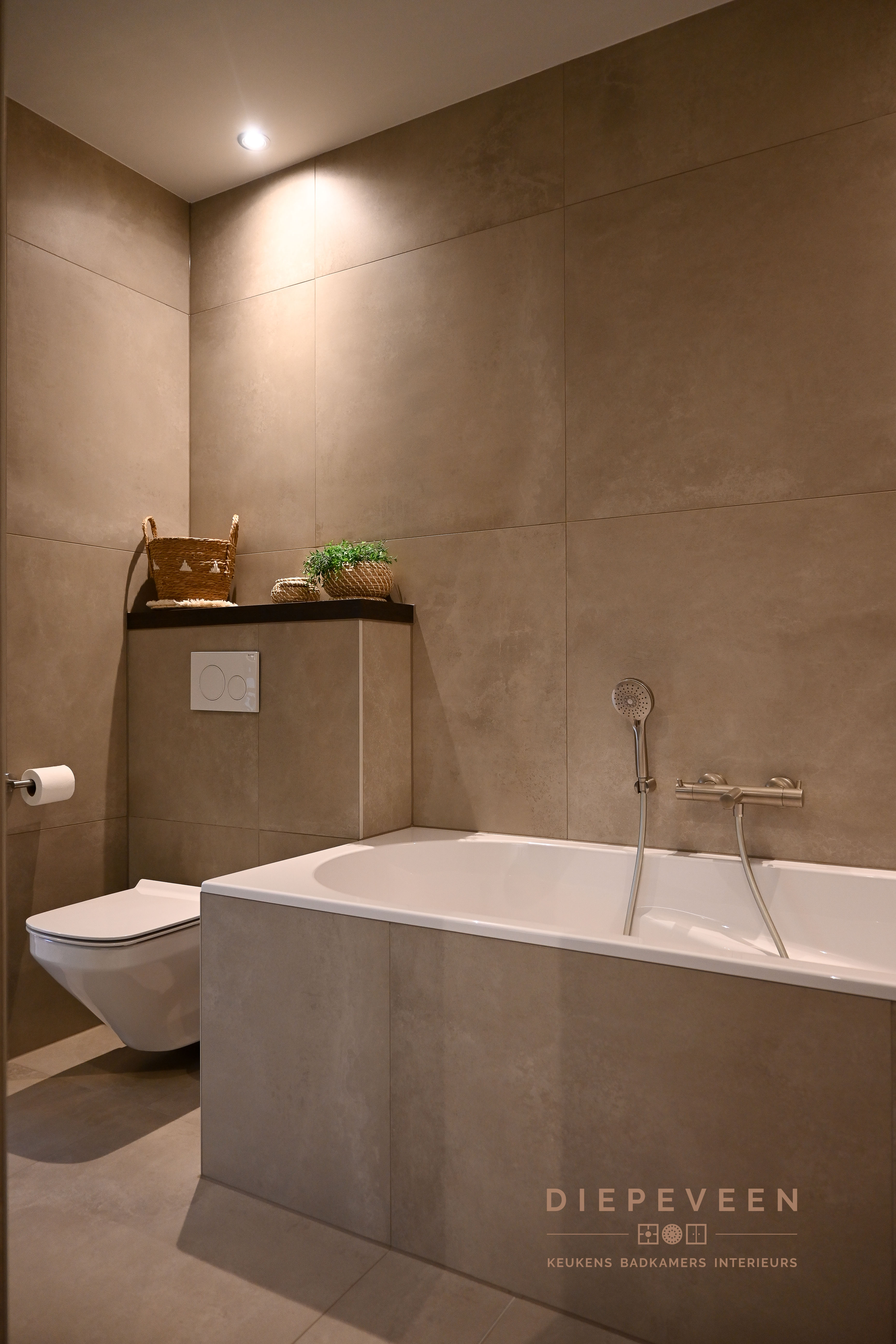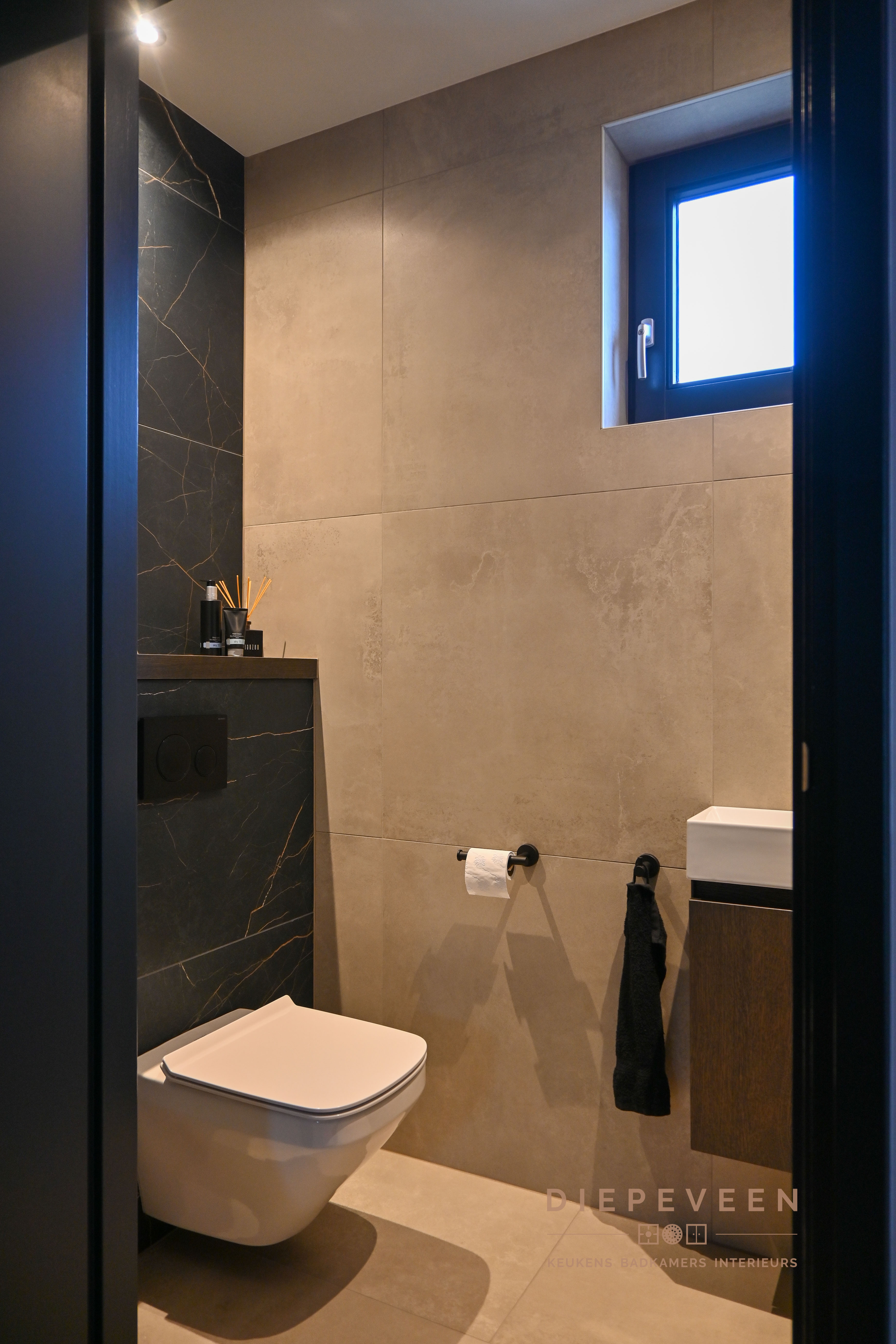 || RUIME BADKAMER & TOILET || Deze ruime badkamer biedt de perfecte balans tussen luxe en comfort. De lichtgrijze tegels en het ingebouwde bad creëren een rustige, sfeervolle uitstraling. De douche, met zitplek en Sunshower, voegt een extra element van ontspanning toe. Het wasmeubel in een donkere kleur hout met brede wasbak, gecombineerd met kastjes met spiegels en verlichting, zorgt voor een moderne en warme touch. Boven het toilet zorgt het zwarte element voor een stijlvol contrast, wat de ruimte extra karakter geeft. In het aparte toilet komen de grijze tegels en donkere houtaccenten mooi terug, terwijl de zwart-marmeren muur achter de wc de ruimte een luxe uitstraling geeft.