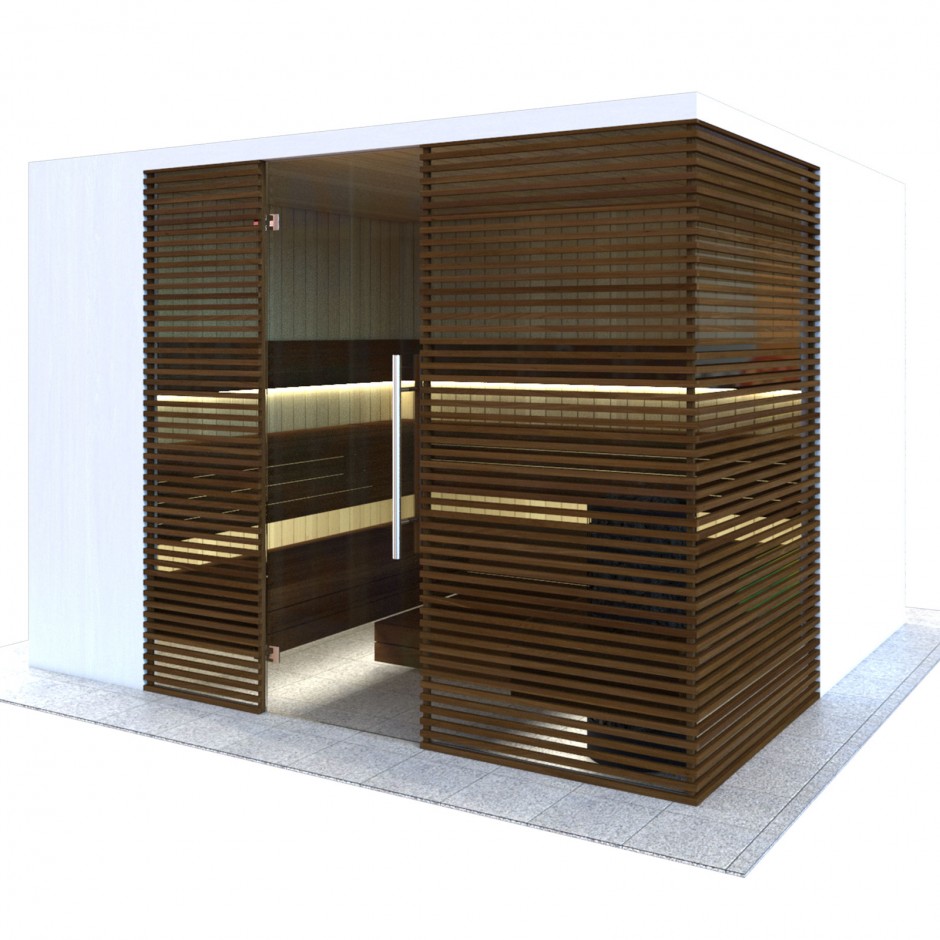 Schitterende sauna met exclusieve uitstraling. Topcomfort in een topdesign sauna. Met LED-verlichting. Leverbaar in vijf standaard afmetingen.