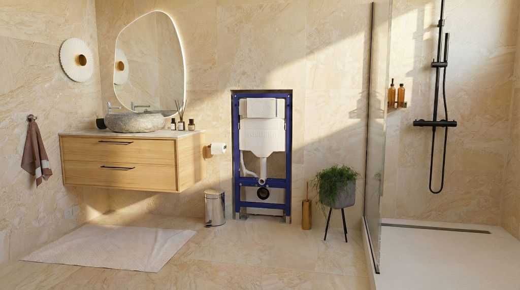 Een belangrijk onderdeel van het systeem is het Geberit Duofix frame. Dit frame staat bekend om zijn stabiliteit, eenvoudige montage en brede compatibiliteit met wandclosets en bedieningsplaten. Door het frame te combineren met de techniek van SFA ontstaat een compleet en praktisch inbouwelement voor installateurs.