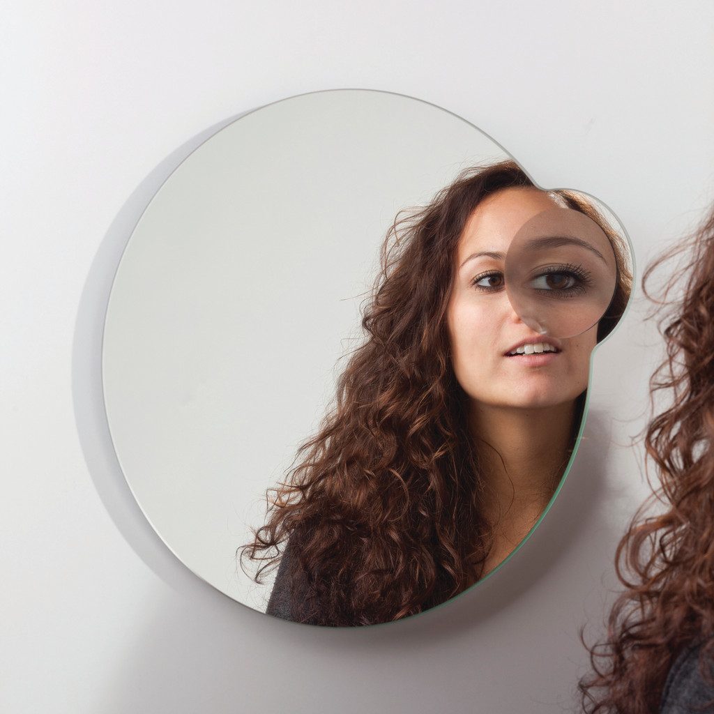 iFocus van Sylvie van de Loo voor Gispen is een ronde wandspiegel met een opvallend detail.