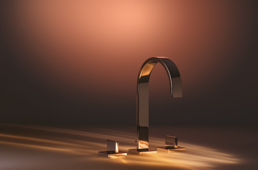 De kranenfabrikant Dornbracht biedt een zorgvuldig geselecteerde selectie hoogwaardige oppervlakken in echt goud aan: of het nu Messing (23kt Goud) of Champagne (22kt Goud) in geborstelde of glanzende uitvoering is – alle varianten overtuigen door een unieke, diepe kleur en glans.