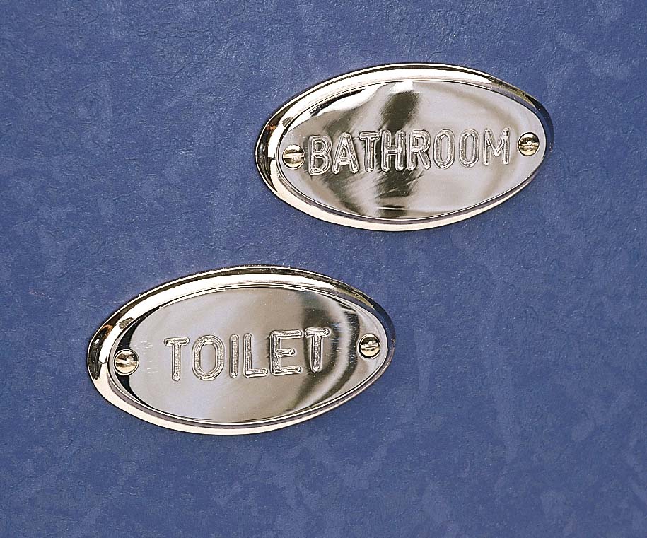Klassiek toilet, badkamer en douche aanduiding van Windsor Bathrooms. Verkrijgbaar in messing met afwerking in chroom, nikkel of goud.