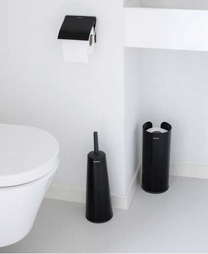 Dit toptrio in Matt Black, White, Platinum, Matt Steel en Brilliant Steel is klaar om je kleinste kamer op te frissen. De set begint met een sterke en hygiënische toiletborstel met houder, discreet en slim ontworpen voor grondig reinigen. De reserverolhouder houdt tot drie rollen discreet uit beeld en beschermt tegen stof en spatten. De minimalistische toiletrolhouder beschermt de toiletrol tegen stof en maakt het gemakkelijk om papier van de rol te trekken. Zie je geen gat in boren? Je kunt kiezen tussen schroeven of tape – allebei inbegrepen. Alles wat je nodig hebt om je toilet te restylen, met een garantie van 10 jaar. Brabantia is goed bezig!