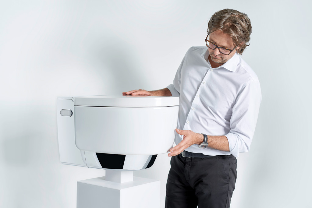 De badkamer is niet alleen een functionele ruimte, je wilt er ook ontspannen, jezelf weer opladen. De laatste jaren is de esthetiek van de badkamer steeds belangrijker geworden en de beste douchewc van de wereld moet daar naadloos in opgaan. Ontwerper Christoph Behling neemt je mee in zijn ontwerpvisie: