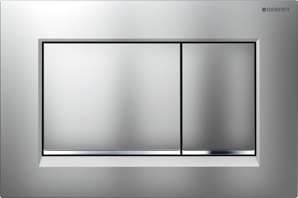 Geberit biedt jaar en dag een zeer breed assortiment bedieningsplaten. Voor het doortrekken van het toilet is er keuze uit een grote verscheidenheid aan kleur, materiaal, vorm en techniek. De nieuwe Sigma30 bedieningsplaat is een nieuw lid van de Sigma familie en heeft een duidelijk rechthoekig design. De Sigma30 is verkrijgbaar in twee varianten, te weten een 2-toets bediening én een spoel-stop bediening. Elke variant is verkrijgbaar in verschillende kleuren en ieder heeft zijn eigen materiaal. De Sigma30 vervangt de Tango en Bolero bedieningsplaten van Geberit.