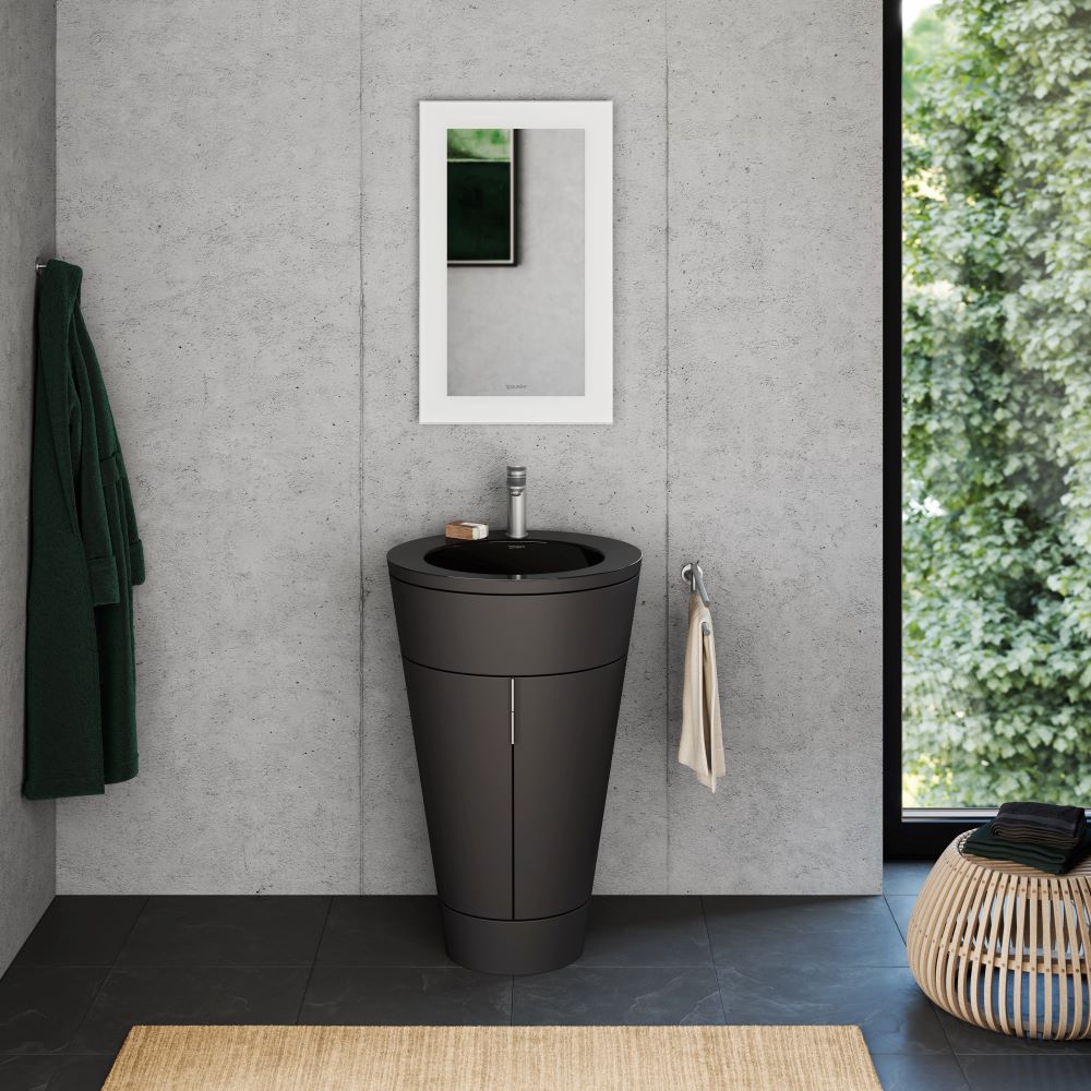 Met Sivida van Philippe Starck speelt Duravit perfect in op deze trend: de fijn gevormde opzetwastafels, rond of vierkant, rusten op nauwkeurig gevormde consoles. Doordat beide elementen uit het identieke DuroCast®-materiaal zijn vervaardigd, lijkt de combinatie uit één stuk gegoten. Door moderne authenticiteit te combineren met functionele, lineaire vormen en een harmonieus kleurenpalet van wit, donkergrijs en lichtgroen, voldoet Sivida by Starck aan de behoefte aan meer individualiteit en welzijn.